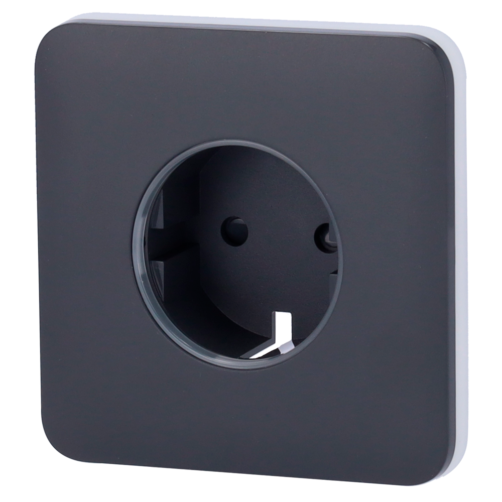 Couvercle avant pour fiche intelligente de type F – Compatible avec AJ-OUTLETCORE-SMART – Indicateur LED de l’état de la prise et de la consommation d’énergie – Bouton tactile pour la commande manuelle – Rétro power LED – Couleur graphite