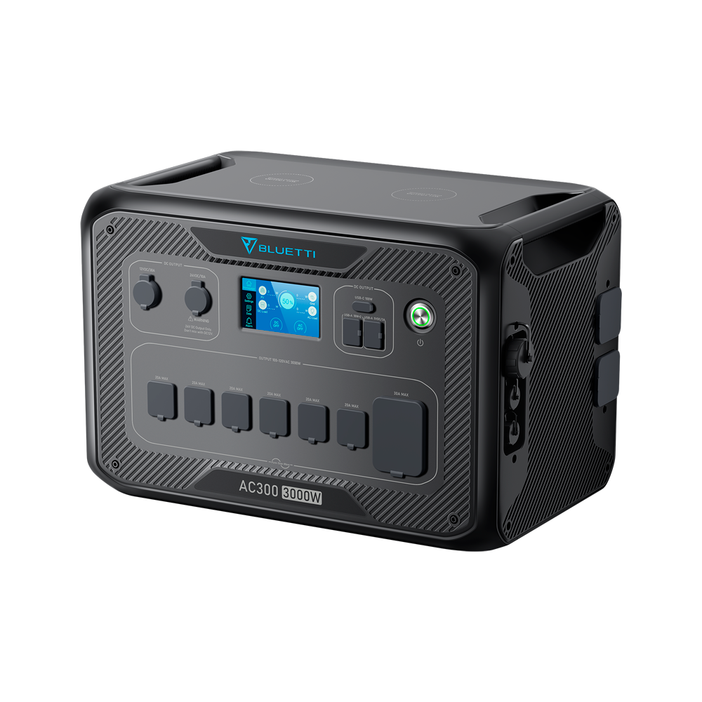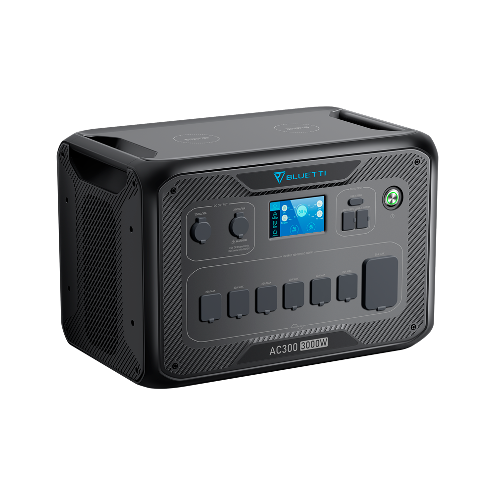 Bluetti-Onduleur-Écran tactile -Capacité 3072Wh(con 1xBl-B300)-Puissance de sortie maximale 3000W-Pic jusqu’à 6000W-6 Sorties AC 220~240V onde sinusoïdale -1 Sortie DC RV 12V / 30A-2 Sorties USB-A 5V / 3A-1 Sortie USB-C 100W-2 Sorties USB-A 18W-1 sortie du port allume-cigare 24V/10A -1 sortie CA 120V/30A TT-30-2 sorties sans fil de 15W-Prise en charge de quatre fonctions d’onduleur-Contrôle via APP-Extensible avec jusqu’à 4 modules de batterie supplémentaires-Compatible avec BL-B300-Fonctionne avec au moins 1 BL-B300.