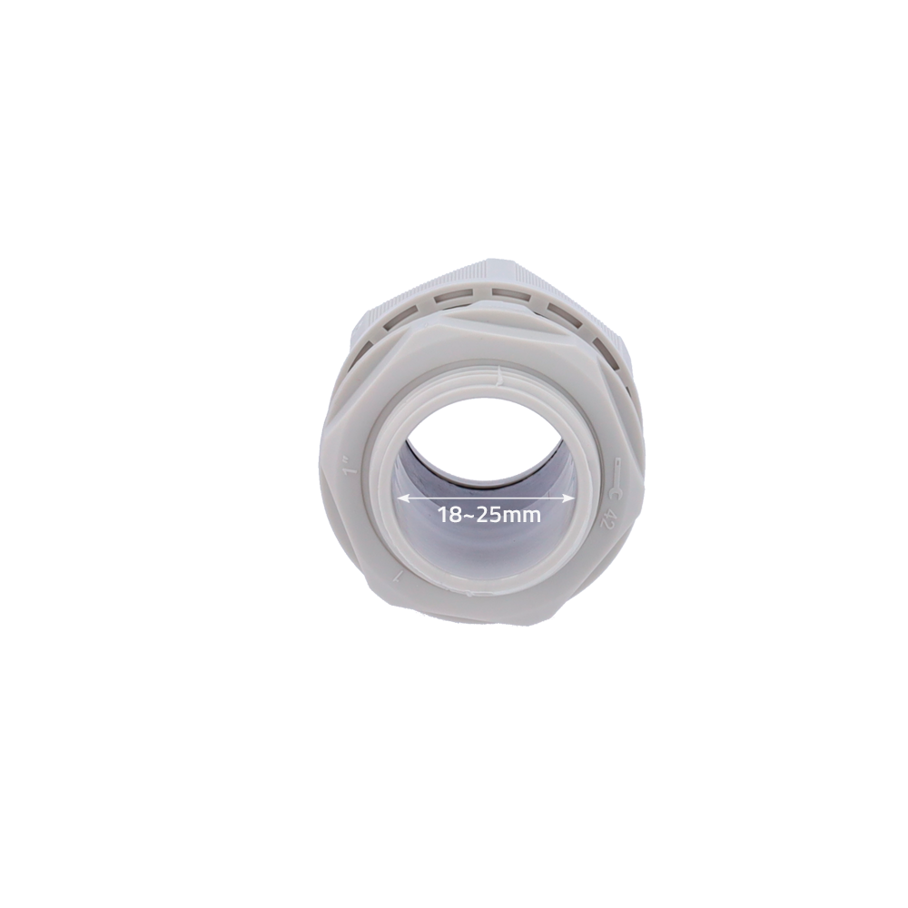 Raccord étanche – Plastique – Diamètre 18~25mm – IP68 – Couleur Gris