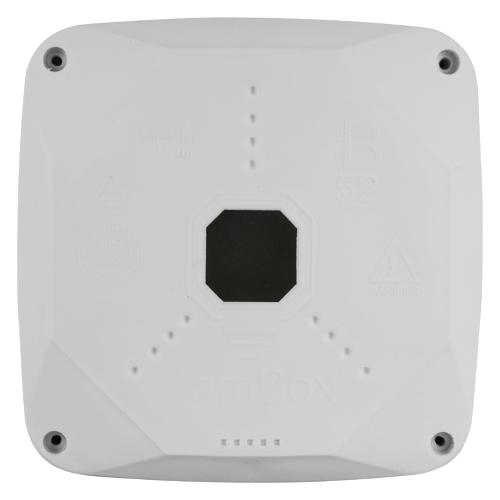 Boîte de jonction pour caméras dôme-Plastique-Permet de situer le passage du câblage à l’intérieur-145 mm (Hau) x 145 mm (Lar) x 50 (Prof) mm-Couleur blanche.