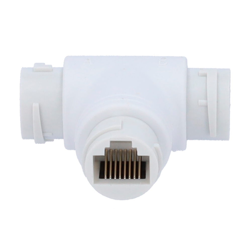 Adaptateur RJ45 – Connecteur d’entrée RJ45 femelle – Connecteur de sortie 2 RJ45 femelle – Compatible UTP – IP66 – Coloris Blanc