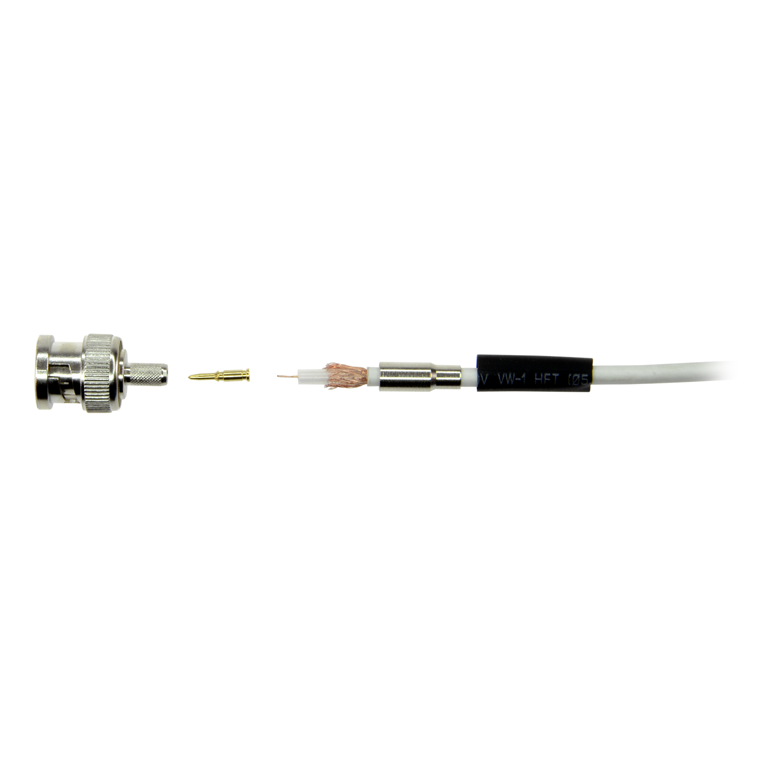 Connecteur BNC SAFIRE fin mâle à sertir. Requis pour les installations dans lesquelles se dispose d’un câble Microcoaxial et ayez besoin des connecteurs BNC.